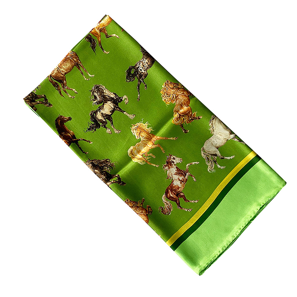 Eșarfă din mătase naturală Majestic Horses Verde