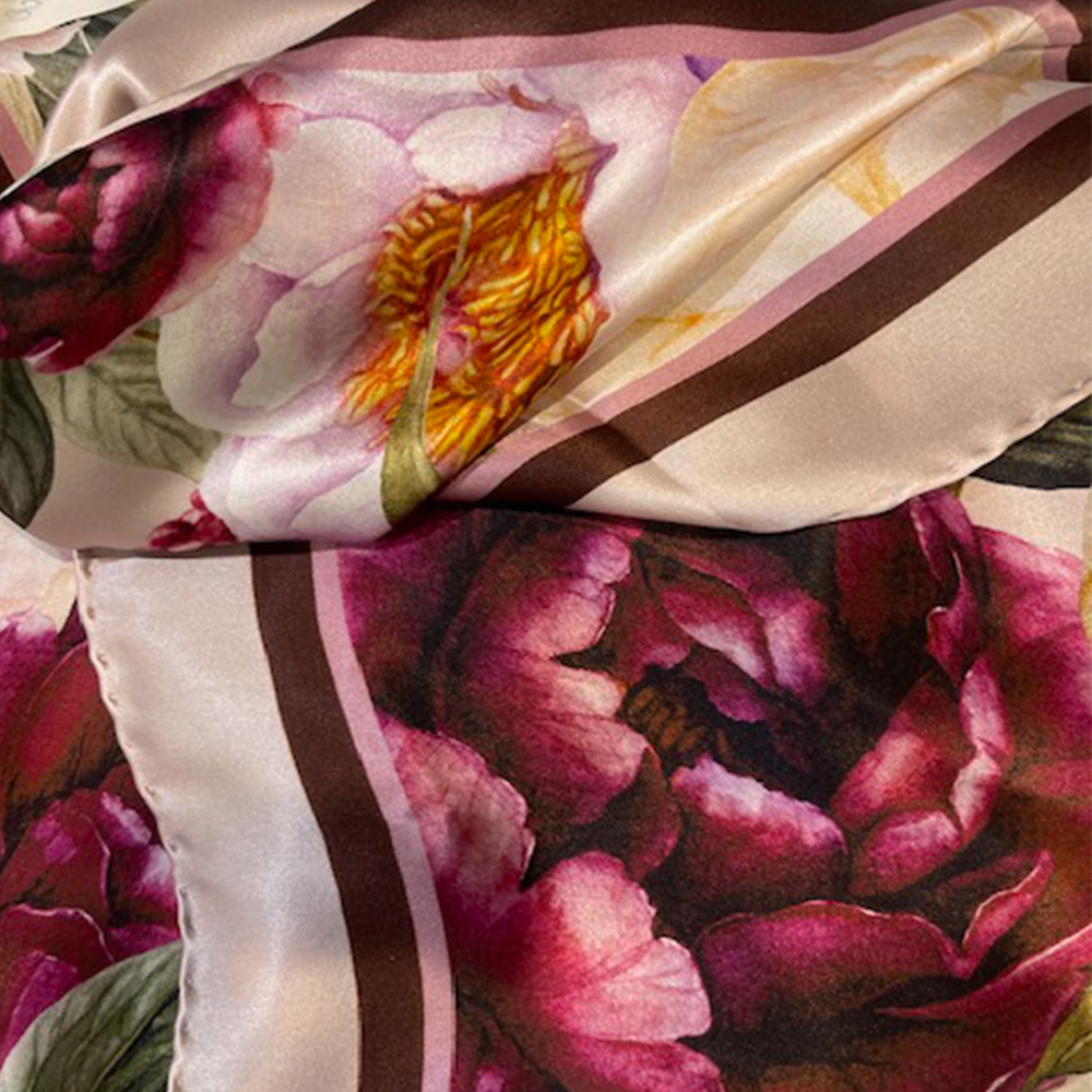 Eșarfă din mătase satinată Peonies Symphony