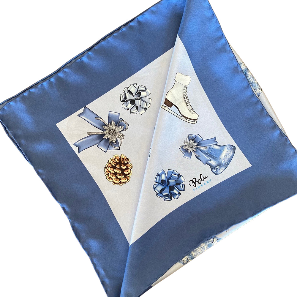 Frozen Elegance este o batistă de rever din 100% mătase naturală twill, ce surprinde rafinamentul liniștit al iernii printr-un design elegant cu fulgi de zăpadă, patine, bomboane și cadouri festive. Este un accesoriu statement pentru gentlemanul care dorește să adauge o notă discretă, dar sofisticată, ținutelor sale din sezonul rece