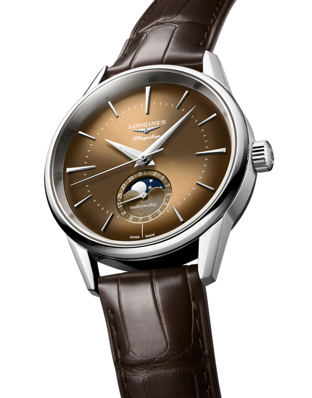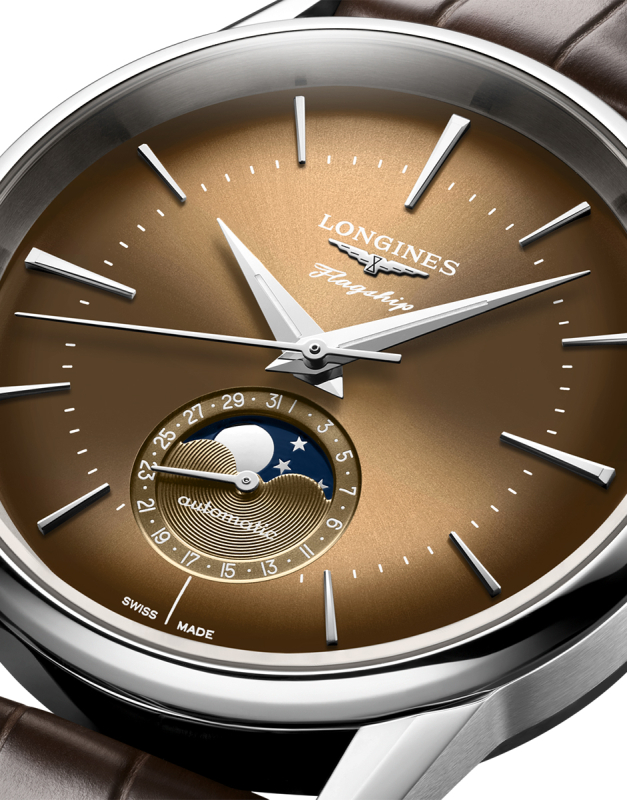 Modelul Heritage Moonphase continuă această tradiție, aducând un tribut designului clasic Longines, dar cu un update mecanic și estetic pentru epoca modernă.