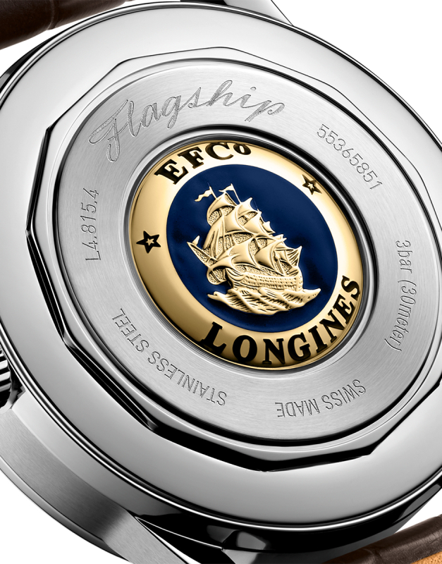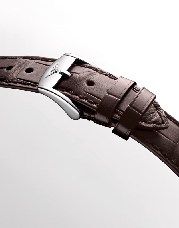 ✔ Decorare vizibilă prin spatele transparent al carcasei – rotor gravat Longines, finisaje elvețiene elegante.